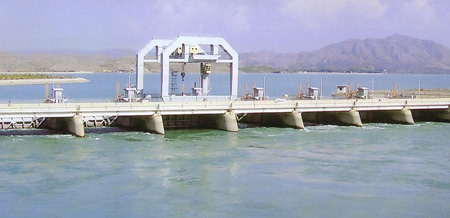 The Barrage located 7 km downsteam of Tarbela Dam, provides a 71 M cu m storage pond allowing for the re-regulation of the daily discharge from Tarbela by diverting the flow into the Power Channel. The principal features include 20 No. Standard bays, 8 No undersluices and 8 No head regulator bays in addition to rim embankment fuse plug and dividing island.